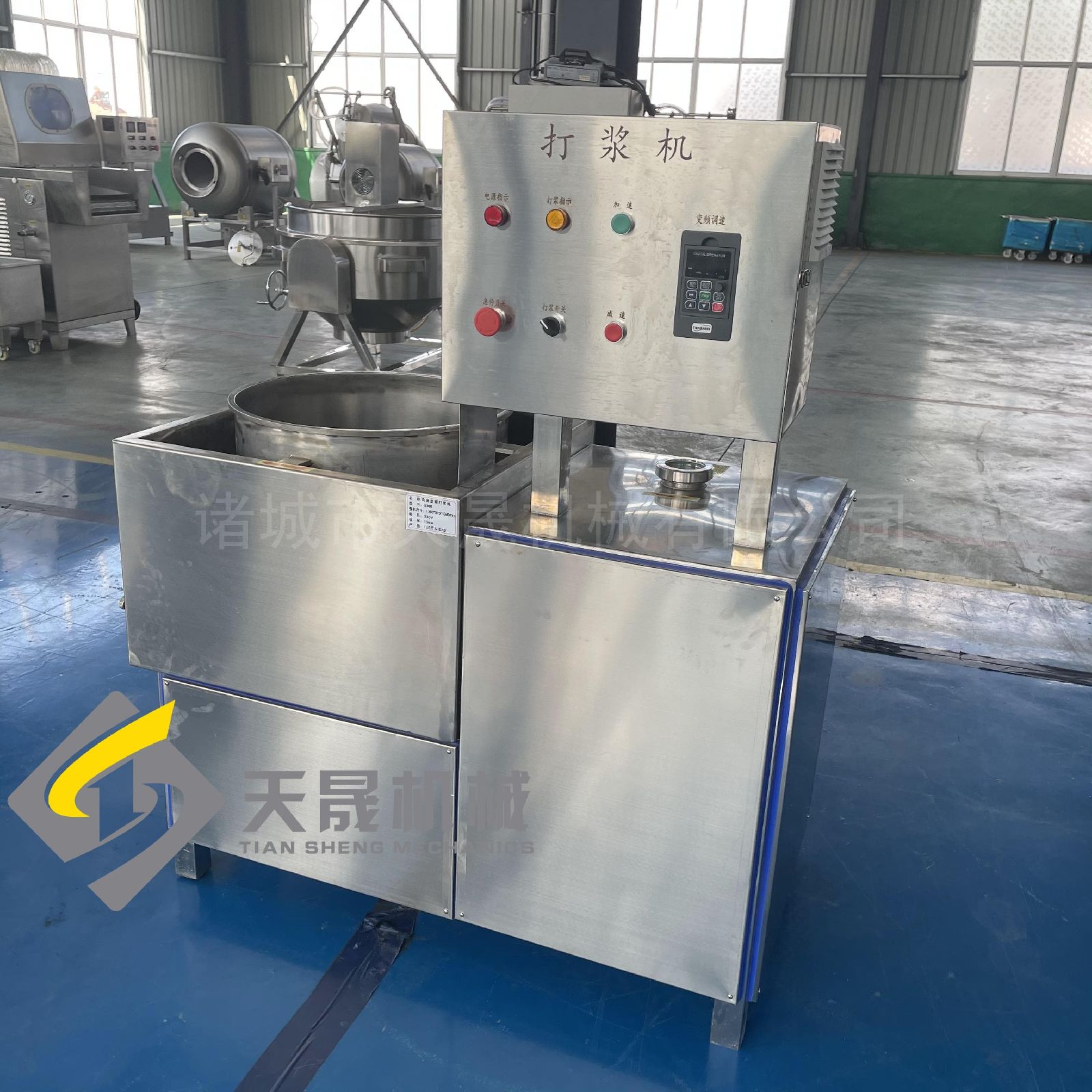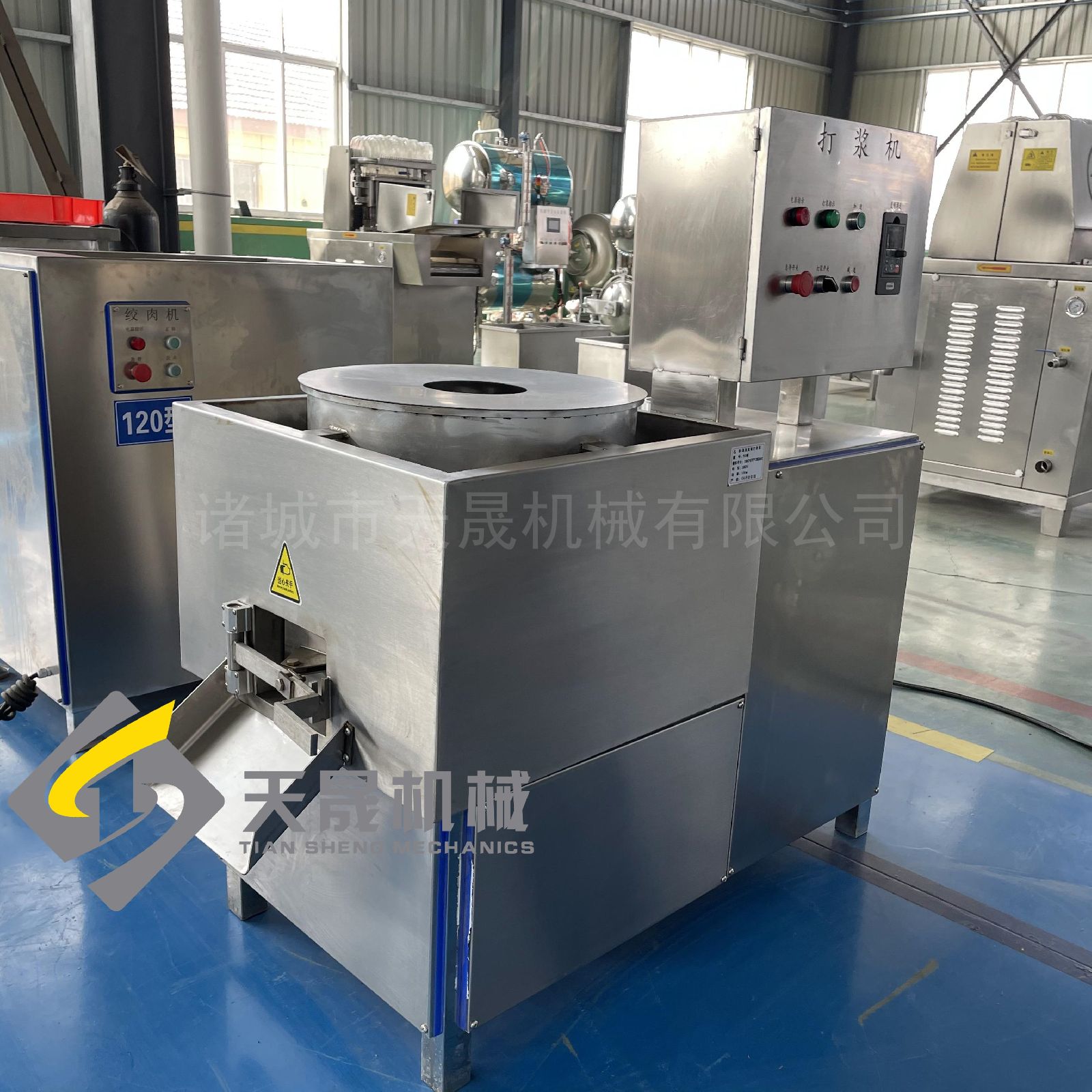 不锈钢打浆机市场上普遍的直立式肉丸打浆机是将电机装在打浆桶的正下方位置,肉丸泥化机直接通过传动轴承传动带动的,传动速度等于电机的转速。本款肉丸打浆机是传动式,肉丸机则通过大皮带轮带小皮带轮的传动方式,在相同电机的转速下,本款传动式打浆机的速度略快,并且因为电机和打浆桶不在一个水平线上,肉丸打浆设备不会有打浆桶漏水导致电机故障的问题。 公司简介:诸城天晟机械厂地处胶东半岛,位于山东省诸城市境内,北靠“风筝之都”潍坊,南接海滨城市日照,东临奥运城市青岛,地理位置优越、交通便利。
